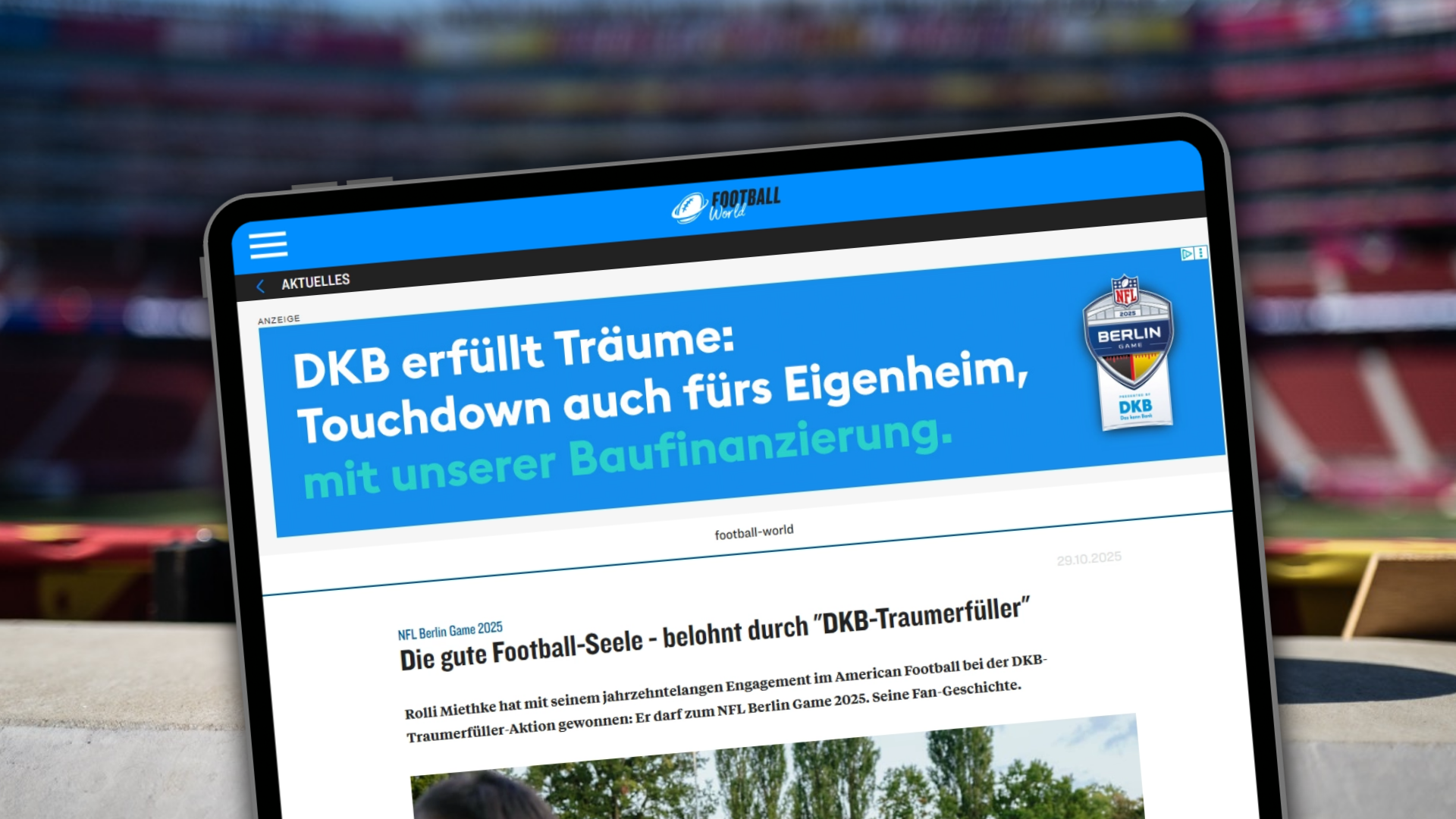 Der kicker ist Deutschlands größtes Sportmedium, ideal, um Sportfans zu erreichen und das heutzutage nicht mehr „nur“ im Fußball. Wie das gelingt, zeigt der Case mit der Deutschen Kreditbank AG (DKB). Rund um die Traumerfüller-Kampagne ging es nicht nur um Reichweite, sondern um konsistentes Storytelling, die smarte Positionierung der Marke DKB und eine ganzheitliche 360° Aktivierung der Kampagne in der relevanten Zielgruppe. Die aktuelle Zusammenarbeit begann mit dem Berlin Game und endete mit dem Super Bowl LX – erfüllte Träume bei den Beteiligten inklusive.