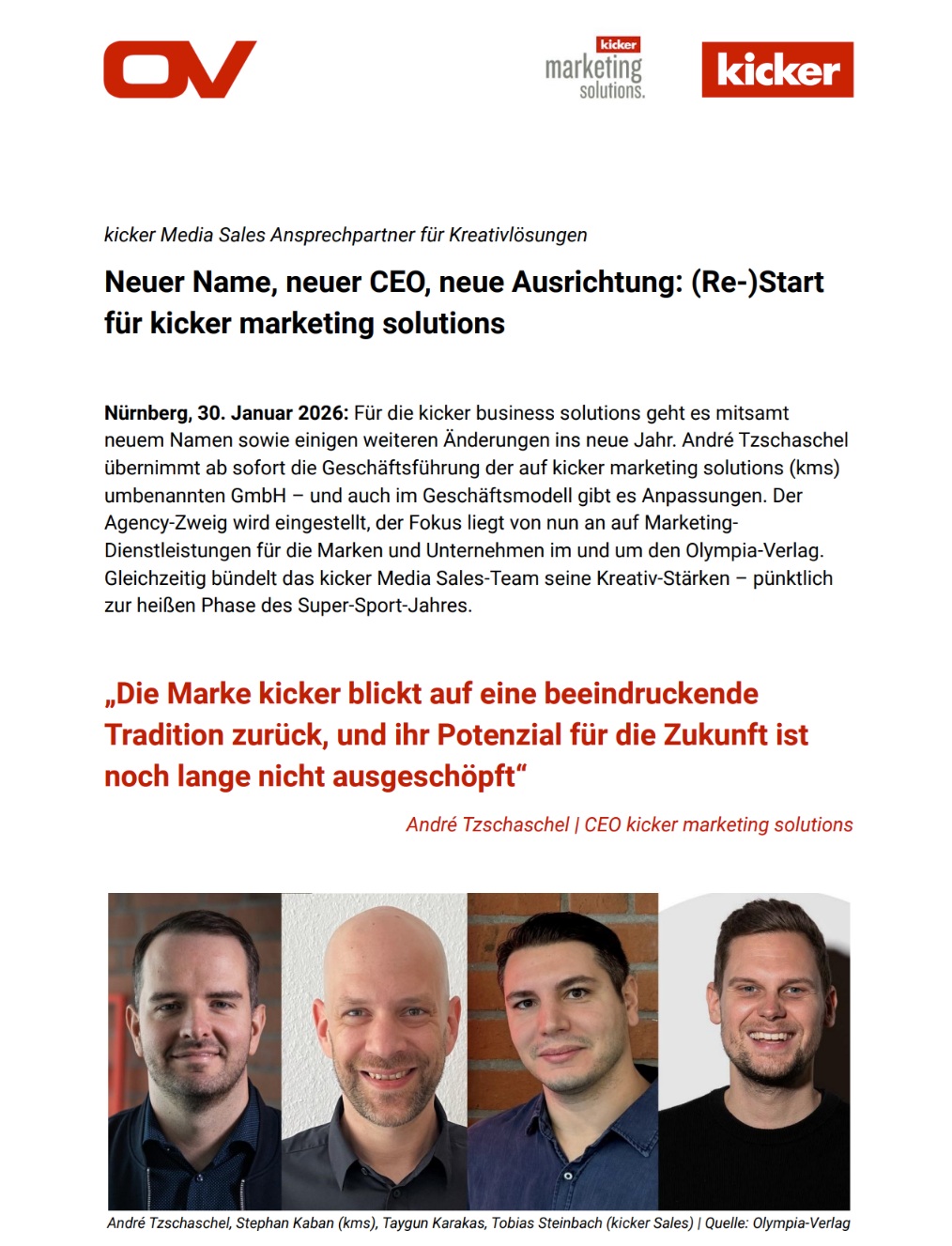 Neuer Name, neuer CEO, neue Ausrichtung: (Re-)Start für kicker marketing solutions