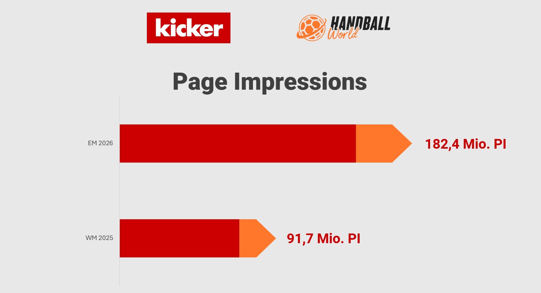 Doppelt gut lief die Handball-Europameisterschaft beim Olympia-Verlag: Mit 158 Millionen Page Impressions bei kicker.de und 24 Millionen bei handball-world.news verdoppelten sich die Handball-Reichweiten im Vergleich zur Weltmeisterschaft im Januar des Vorjahres auf beiden Plattformen nahezu und lassen mit Vorfreude auf das nächste Jahr blicken. Denn das bringt eine Heim-WM.